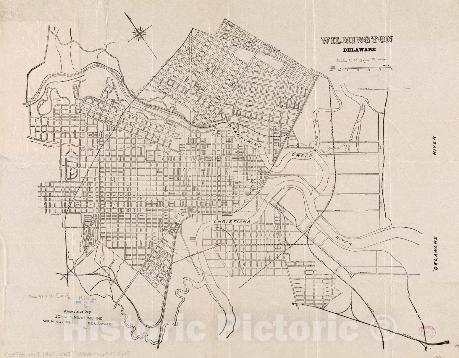 Historical Map, 1921 Wilmington, Delaware, Vintage Wall Art
