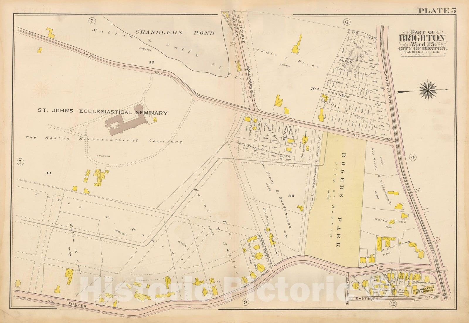 Historic Map : Atlas City of Boston Ward 25 Brighton, Brighton 1909 Plate 005 , Vintage Wall Art
