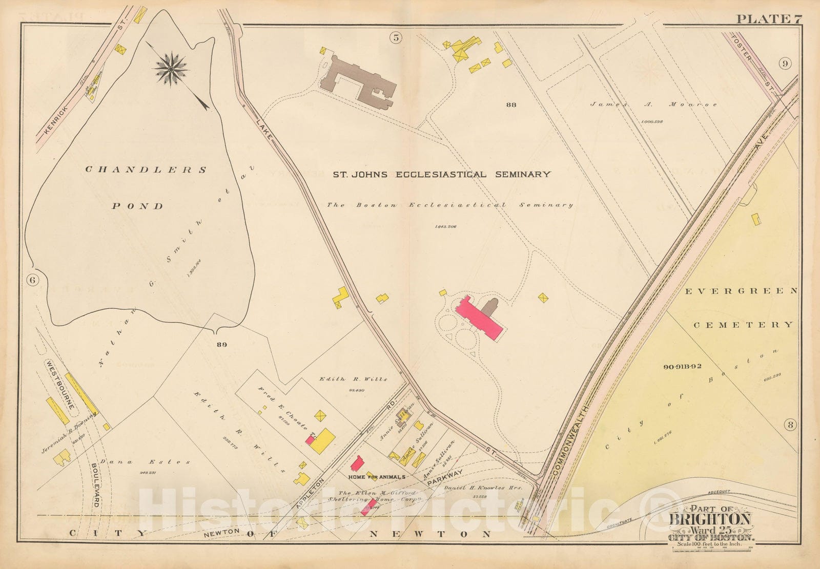 • Historic Map : Atlas City of Boston Ward 25 Brighton, Brighton 1909 Plate 007 , Vintage Wall Art