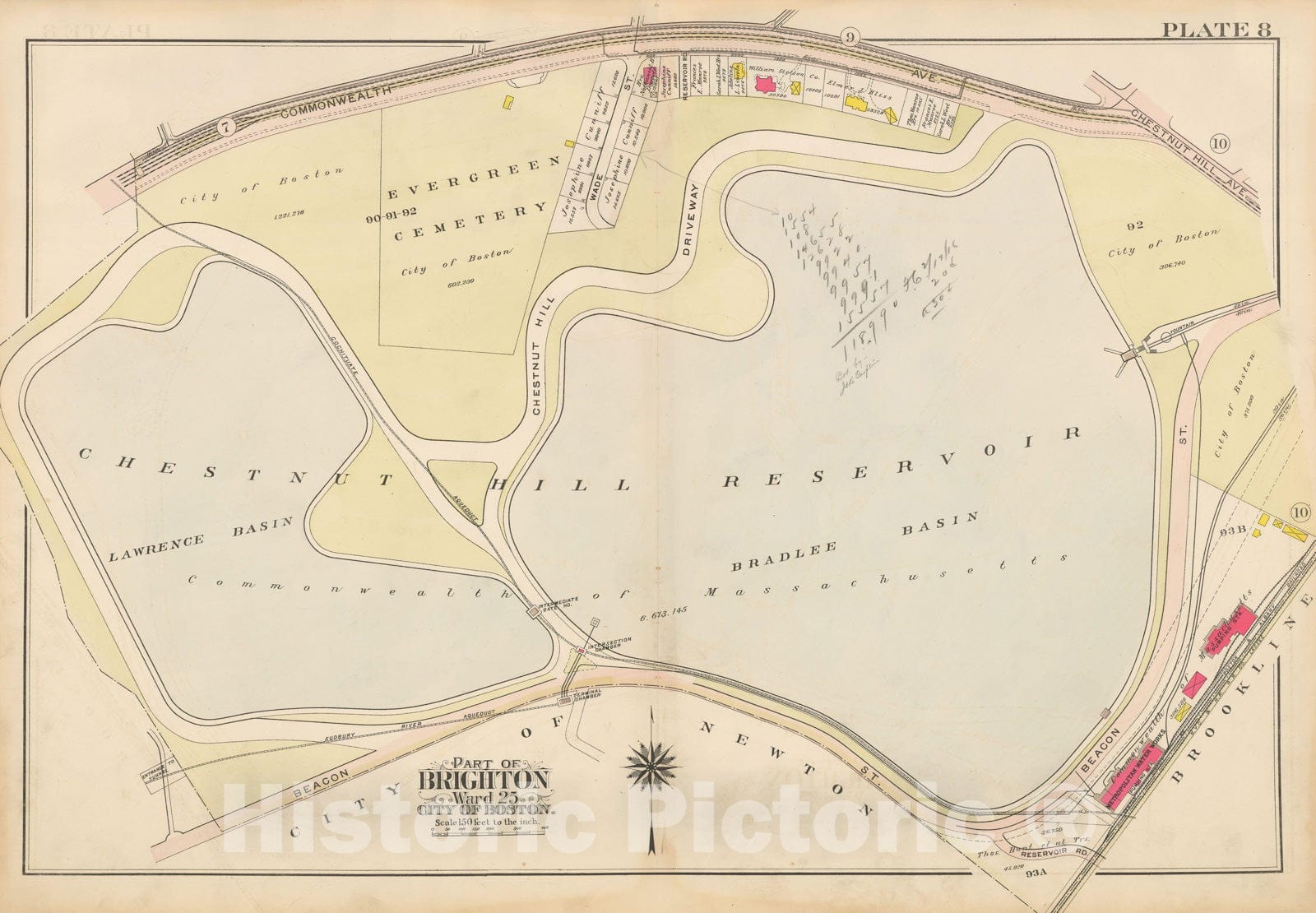 • Historic Map : Atlas City of Boston Ward 25 Brighton, Brighton 1909 Plate 008 , Vintage Wall Art