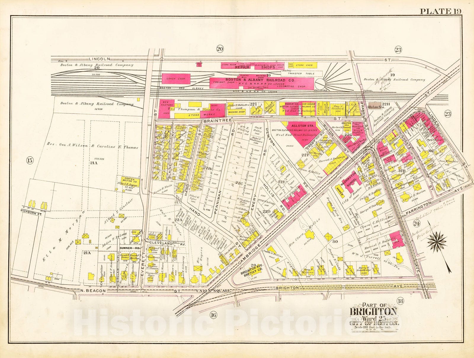 Historic Map : Atlas City of Boston Ward 25 Brighton, Allston 1909 Plate 019 , Vintage Wall Art