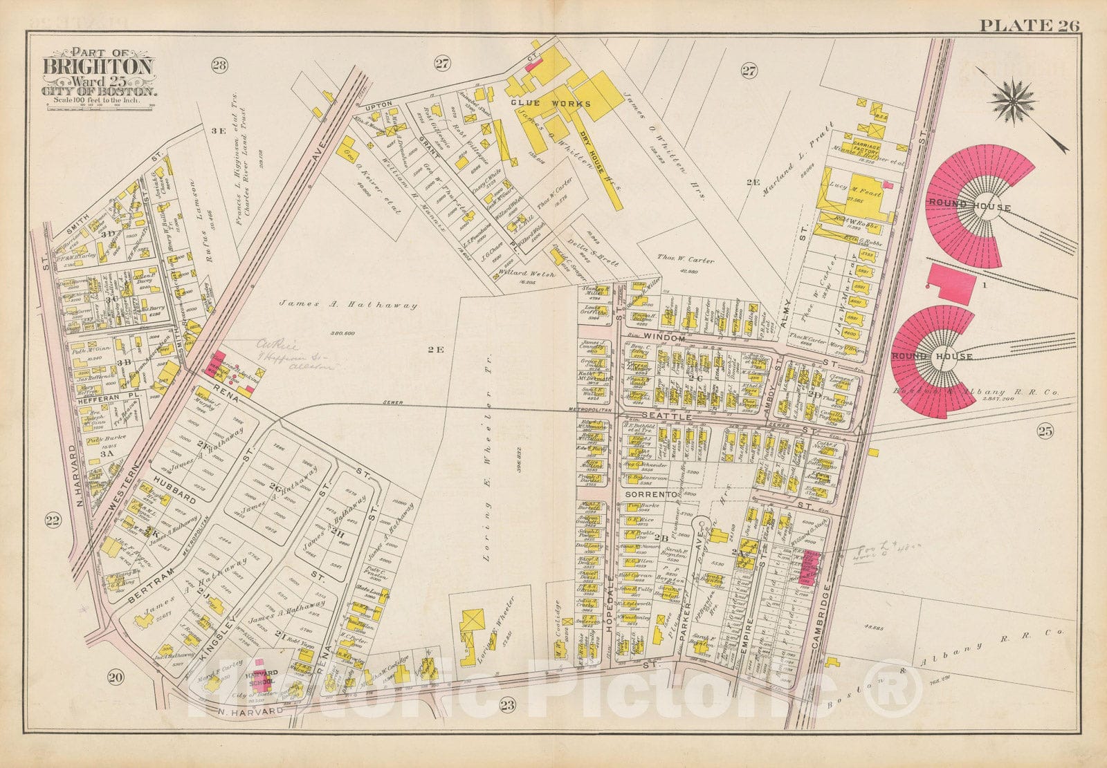 • .Historic Map : Atlas City of Boston Ward 25 Brighton, Allston 1909 Plate 026 , Vintage Wall Art
