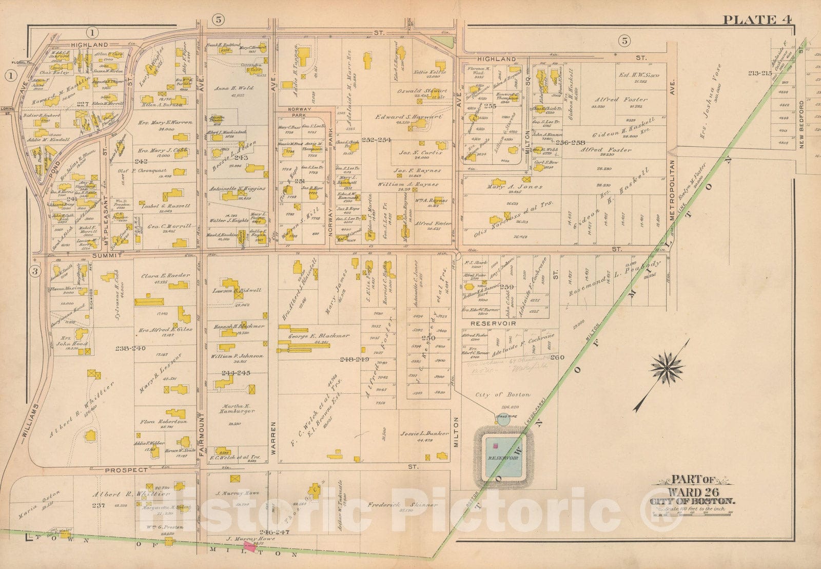 • .Historic Map : Atlas City of Boston Ward 26 Hyde Park, Hyde Park 1912 Plate 004 , Vintage Wall Art