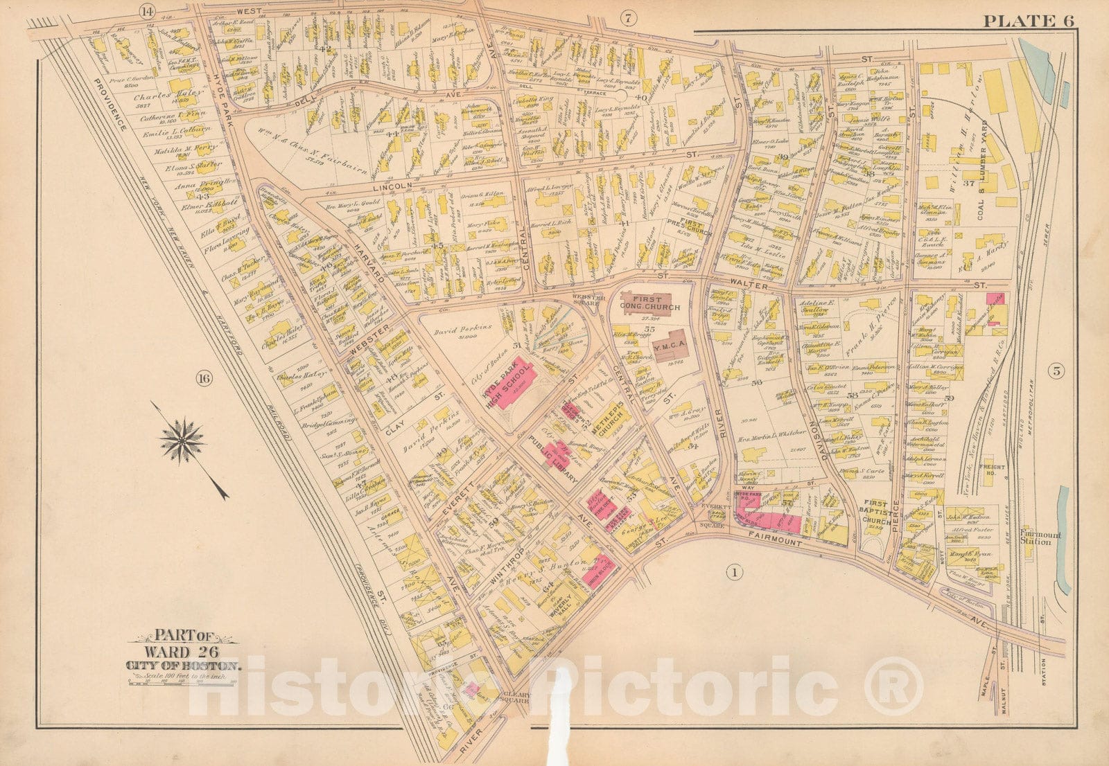 Historic Map : Atlas City of Boston Ward 26 Hyde Park, Hyde Park 1912 Plate 006 , Vintage Wall Art