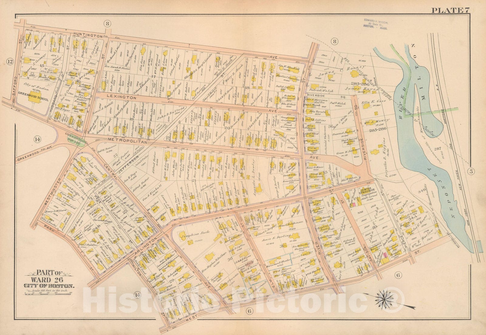 Historic Map : Atlas City of Boston Ward 26 Hyde Park, Hyde Park 1912 Plate 007 , Vintage Wall Art