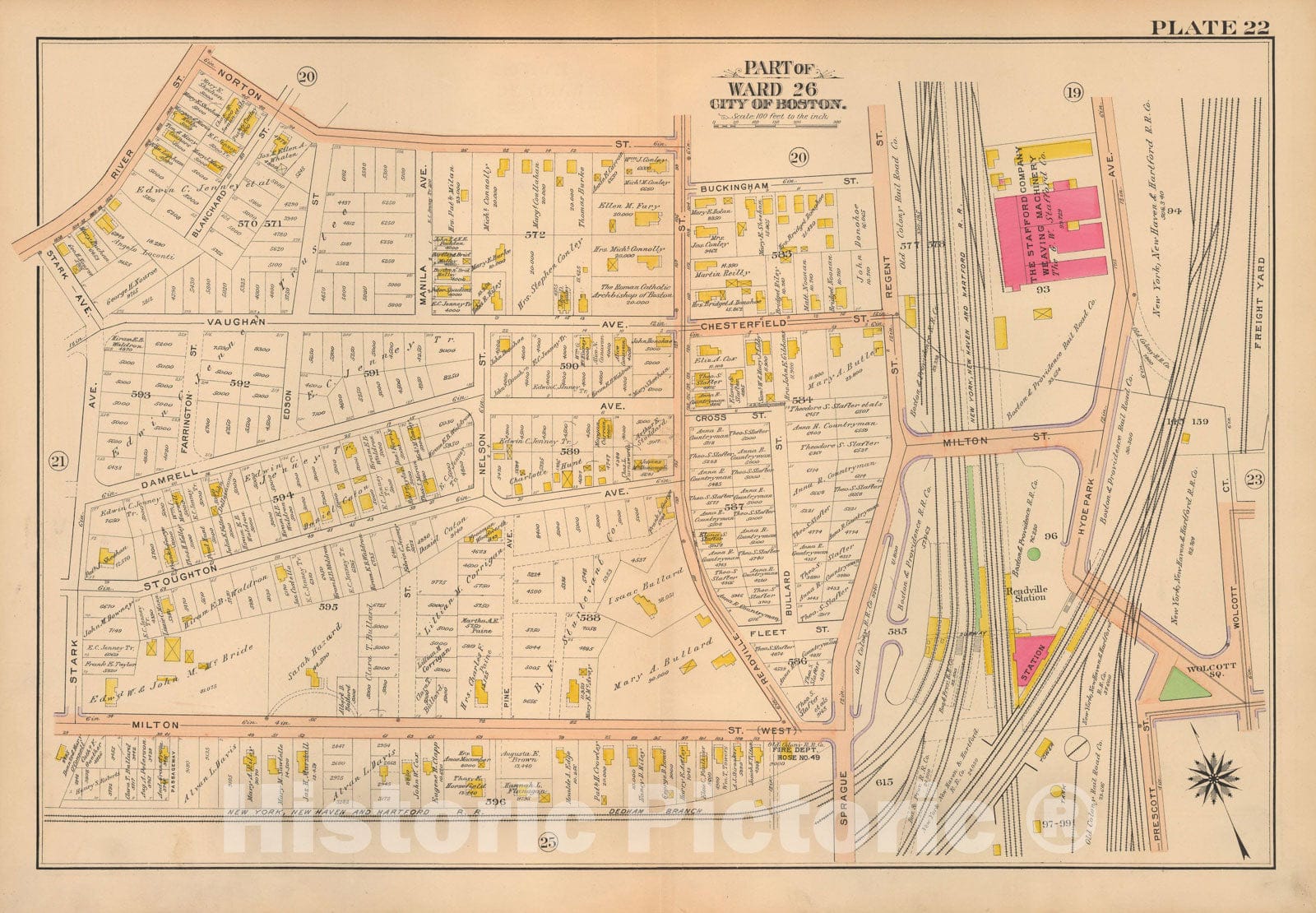 • .Historic Map : Atlas City of Boston Ward 26 Hyde Park, Hyde Park 1912 Plate 022 , Vintage Wall Art