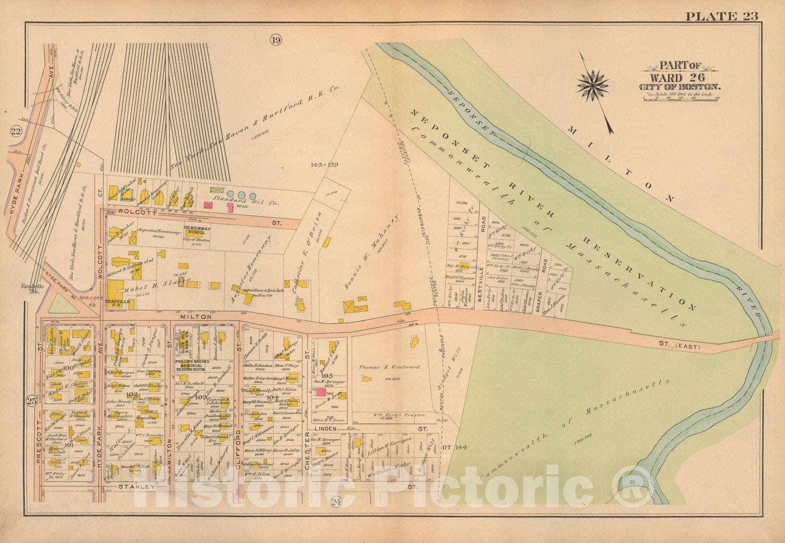 Historic Map : Atlas City of Boston Ward 26 Hyde Park, Hyde Park 1912 Plate 023 , Vintage Wall Art