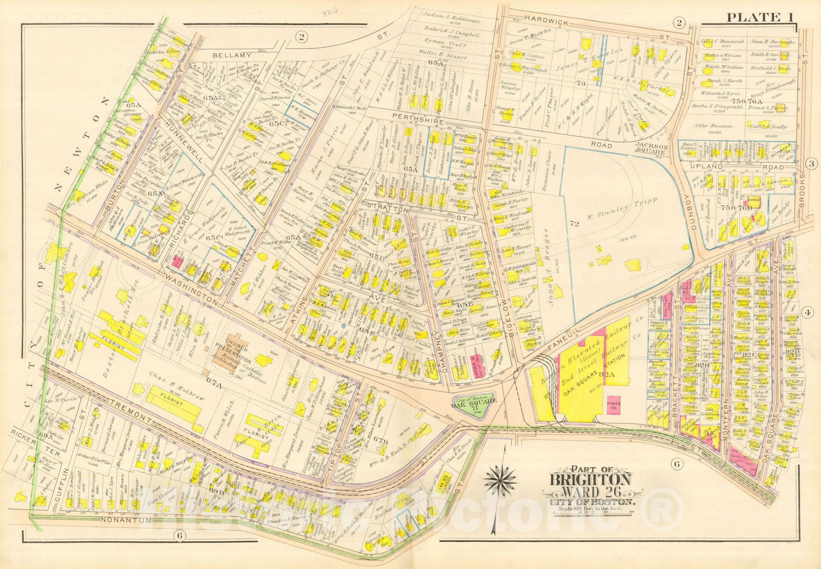 • .Historic Map : Atlas City of Boston, Wards 25 & 26 Brighton, Brighton 1916 Plate 001 , Vintage Wall Art