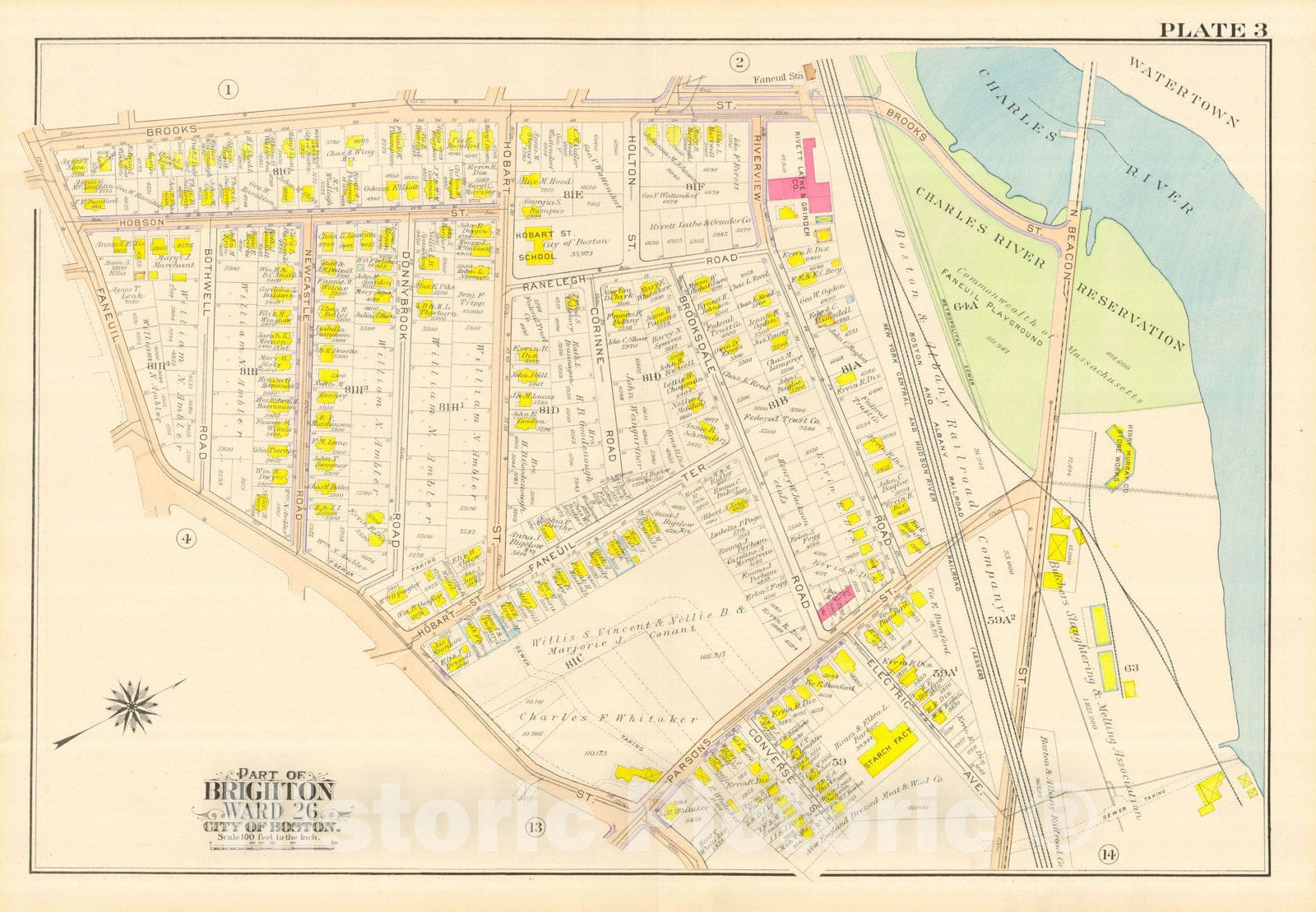 • .Historic Map : Atlas City of Boston, Wards 25 & 26 Brighton, Brighton 1916 Plate 003 , Vintage Wall Art