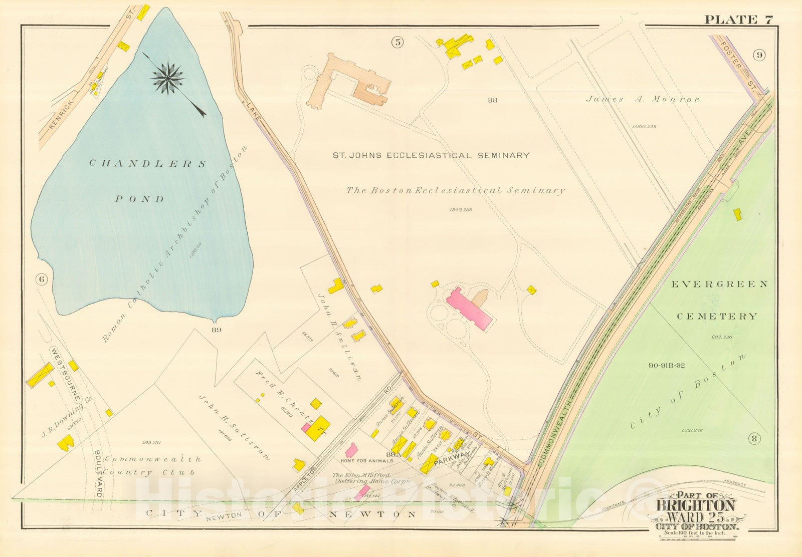 Historic Map : Atlas City of Boston, Wards 25 & 26 Brighton, Brighton 1916 Plate 007 , Vintage Wall Art