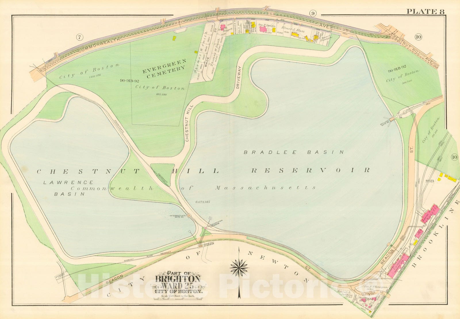 Historic Map : Atlas City of Boston, Wards 25 & 26 Brighton, Brighton 1916 Plate 008 , Vintage Wall Art