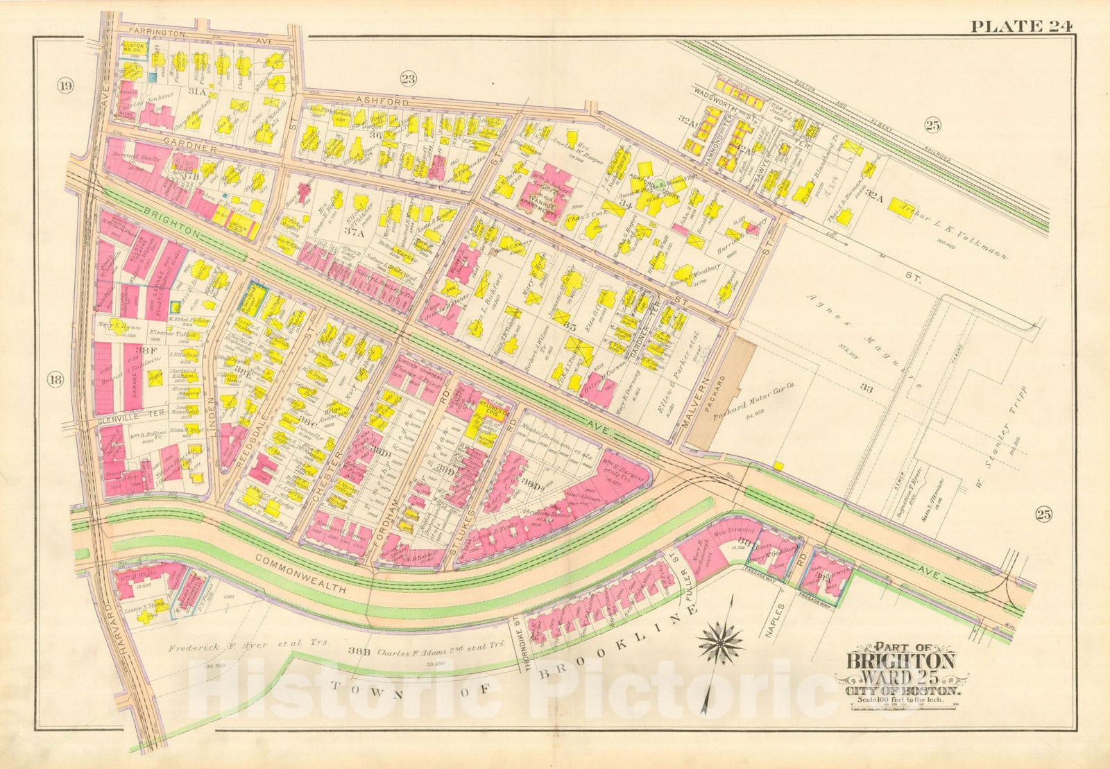 • .Historic Map : Atlas City of Boston, Wards 25 & 26 Brighton, Allston & Brighton 1916 Plate 024 , Vintage Wall Art