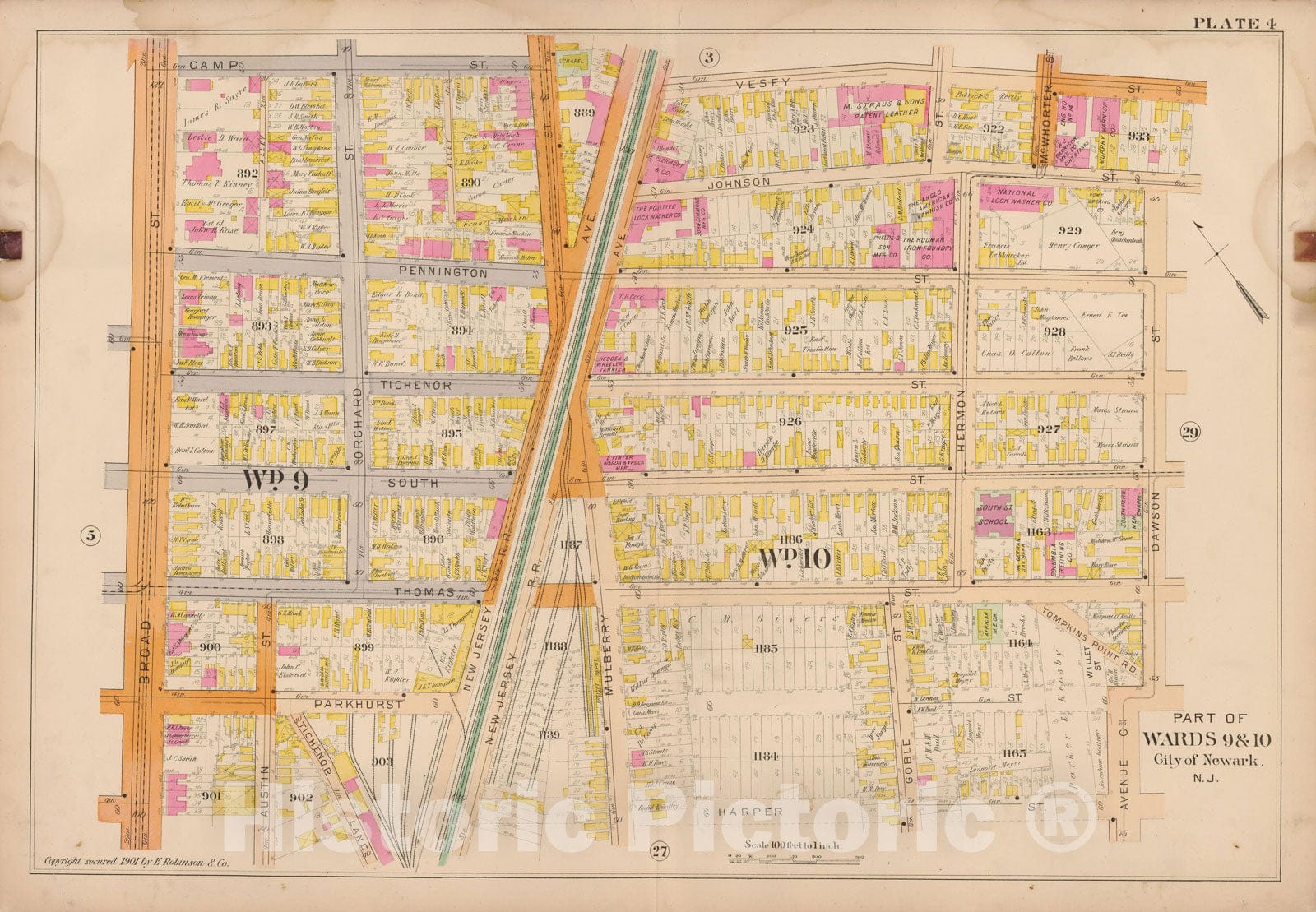 Historic Map : Atlas City of Newark, Newark 1901 Plate 004 , Vintage Wall Art