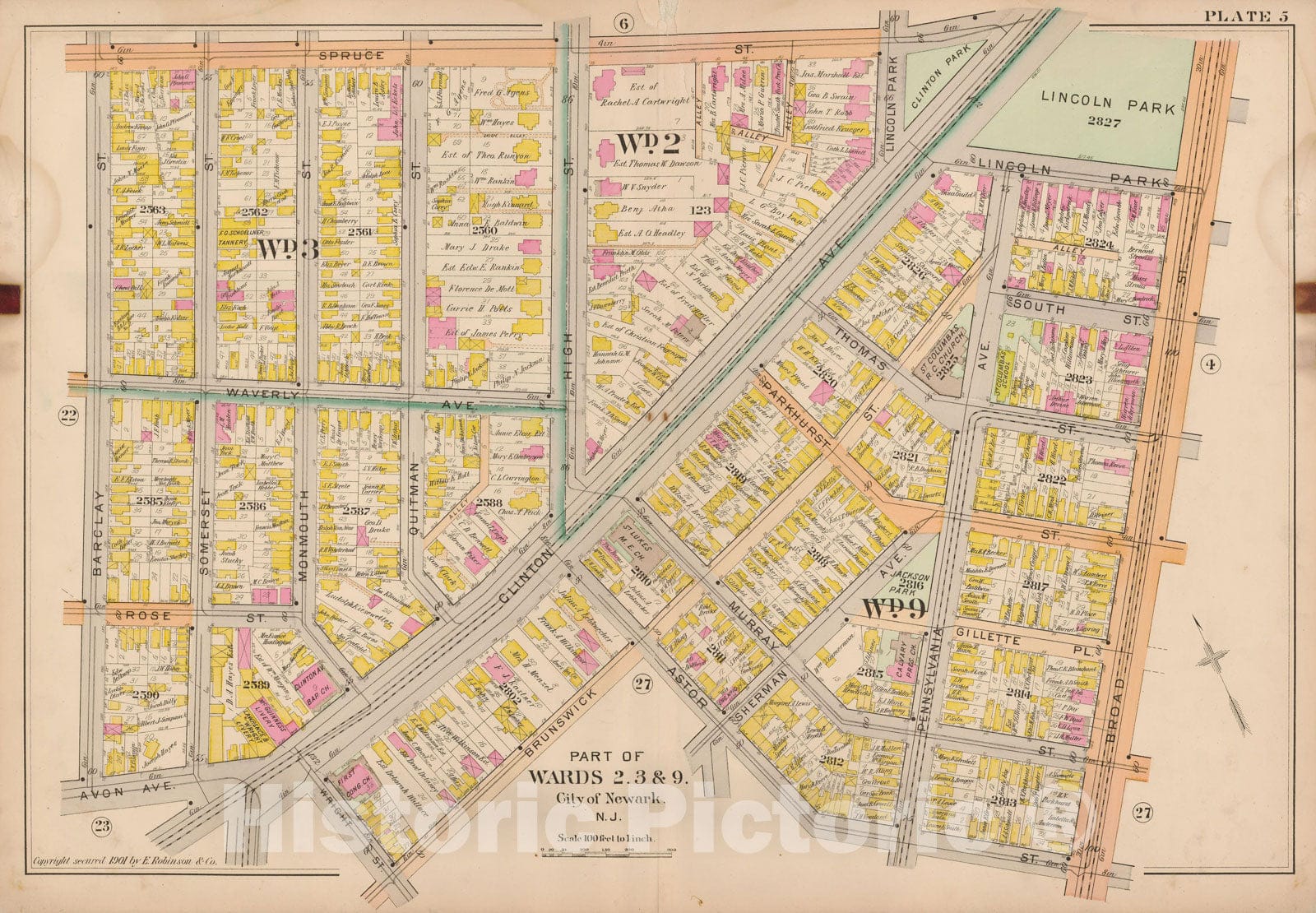 Historic Map : Atlas City of Newark, Newark 1901 Plate 005 , Vintage Wall Art