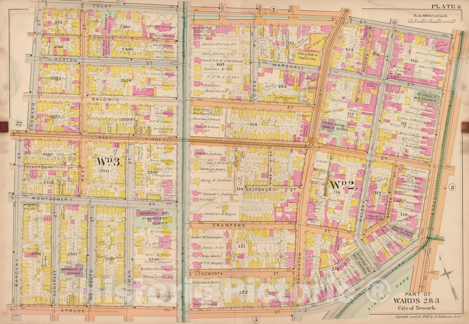 Historic Map : Atlas City of Newark, Newark 1901 Plate 006 , Vintage Wall Art