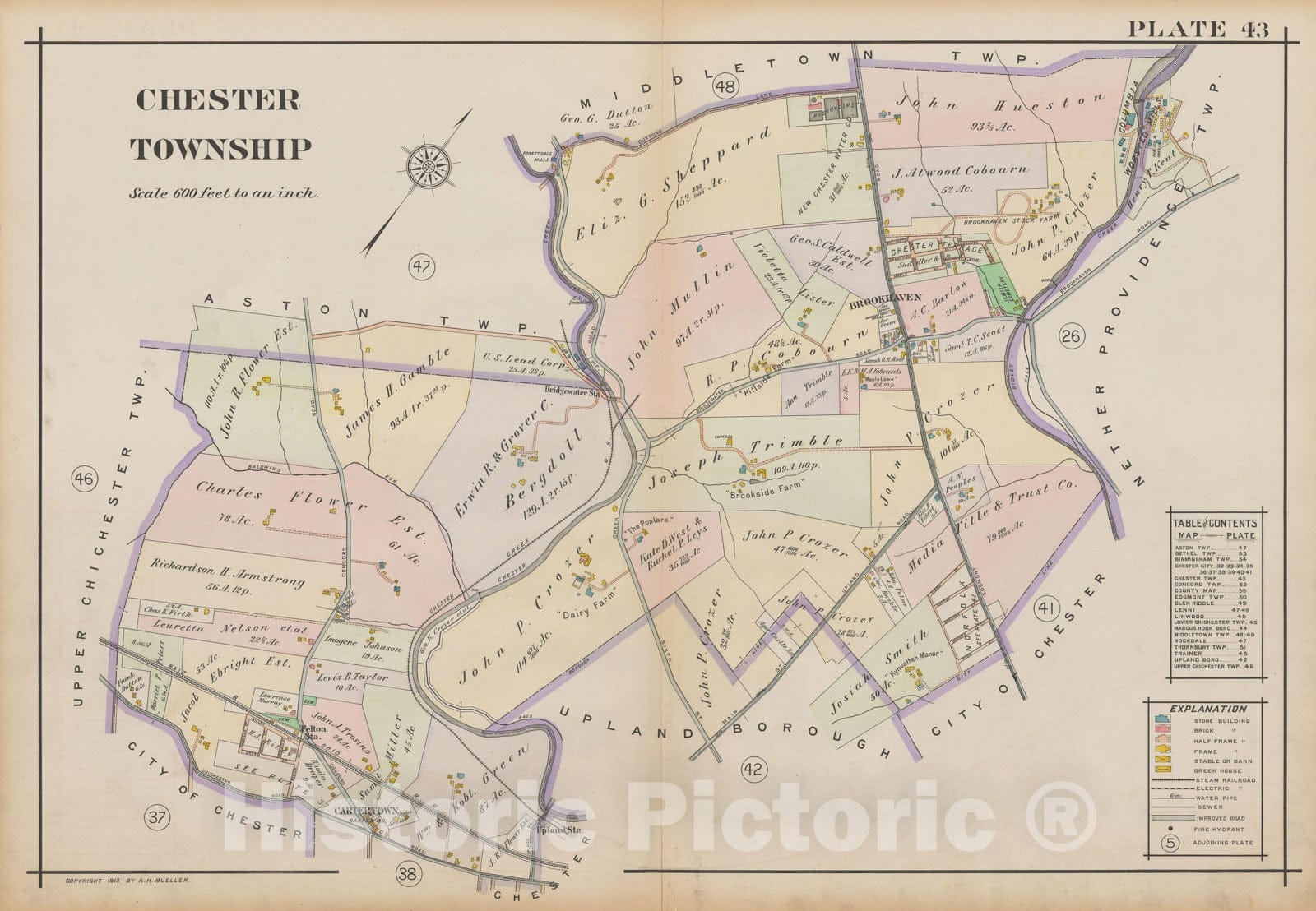 Historic Map : Atlas of Delaware County, West of Ridley Creek, Vol. Two, Chester 1913 Plate 043 , Vintage Wall Art