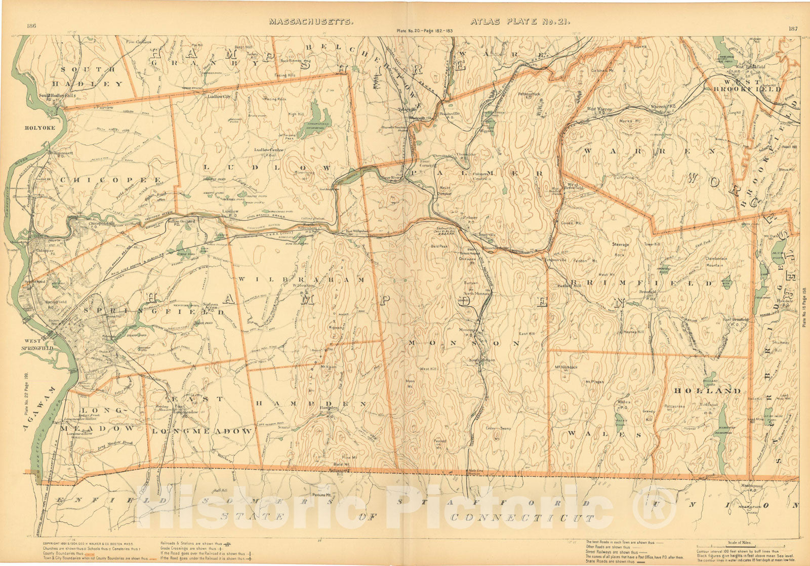 Atlas of Massachusetts, Brimfield & Chicopee & Ludlow & Monson & Palmer & Springfield & Warren & Wilbraham 1904 Plate 021