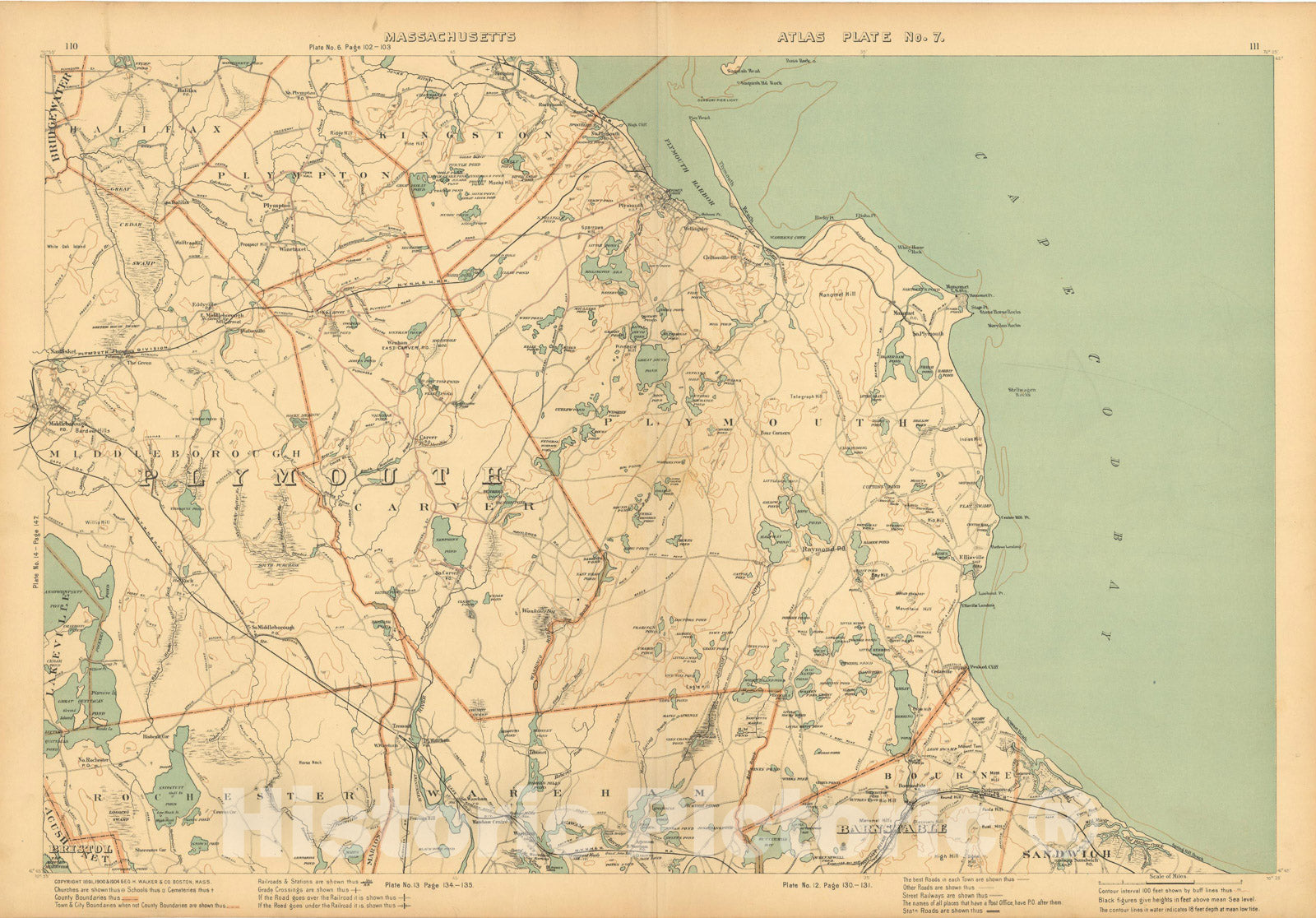 Historic Map : Atlas of Massachusetts, Bourne & Carver & Kingston & Middleborough & Plymouth & Wareham 1904 Plate 007 , Vintage Wall Art