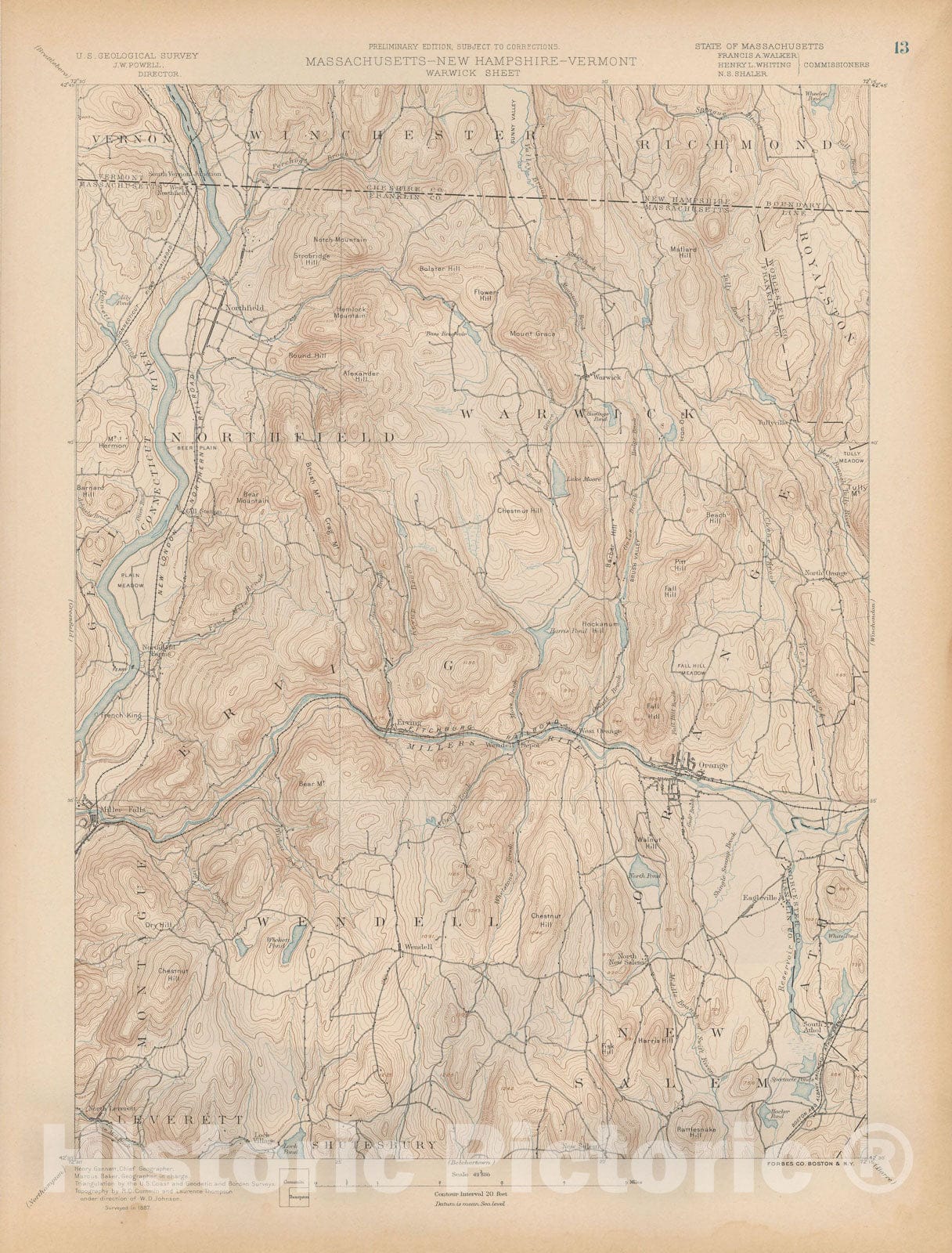 Atlas of Massachusetts (Prelim. Ed. 1884-1888), Erving & New Salem & Northfield & Warwick & Wendell 1890 Page 13