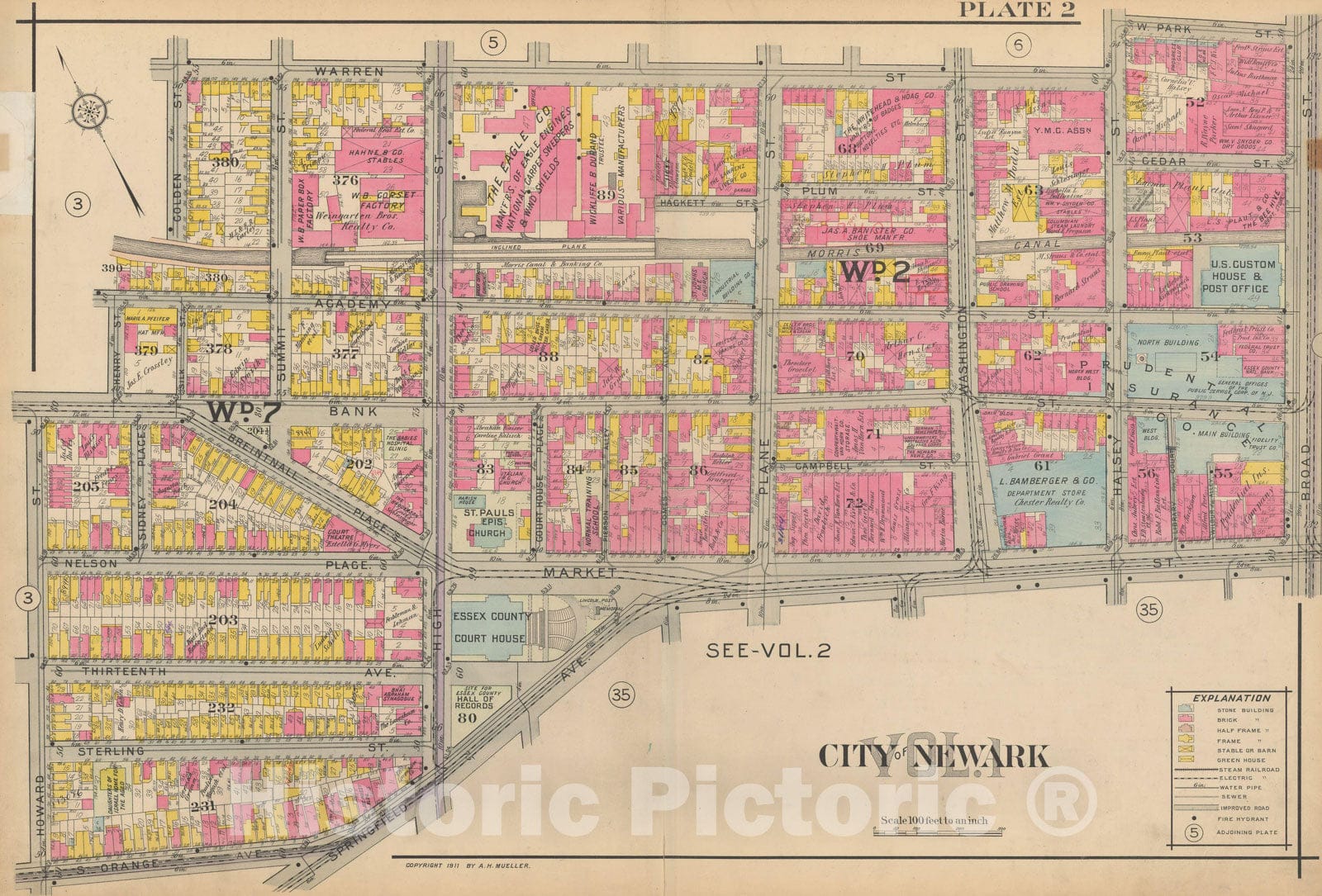 • .Historic Map : Atlas of Newark, Volume 1, Newark 1911 Plate 002 , Vintage Wall Art