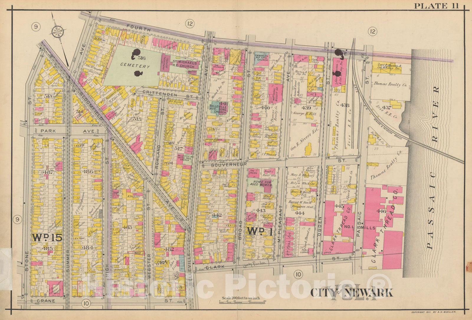 • .Historic Map : Atlas of Newark, Volume 1, Newark 1911 Plate 011 , Vintage Wall Art