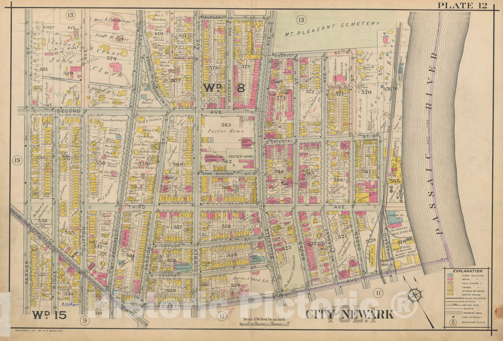 • Historic Map : Atlas of Newark, Volume 1, Newark 1911 Plate 012 , Vintage Wall Art