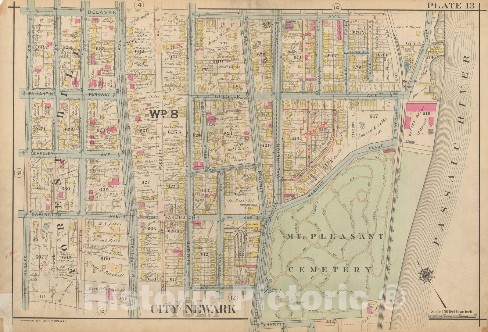 • .Historic Map : Atlas of Newark, Volume 1, Newark 1911 Plate 013 , Vintage Wall Art