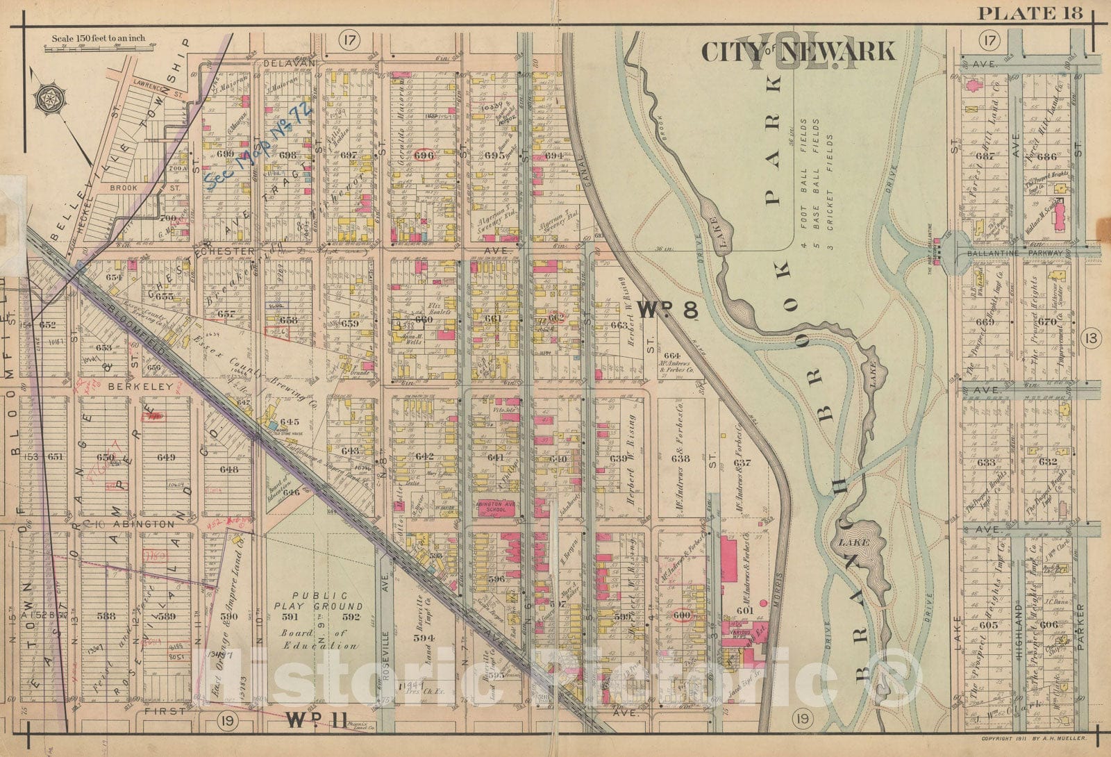 Historic Map : Atlas of Newark, Volume 1, Newark 1911 Plate 018 , Vintage Wall Art