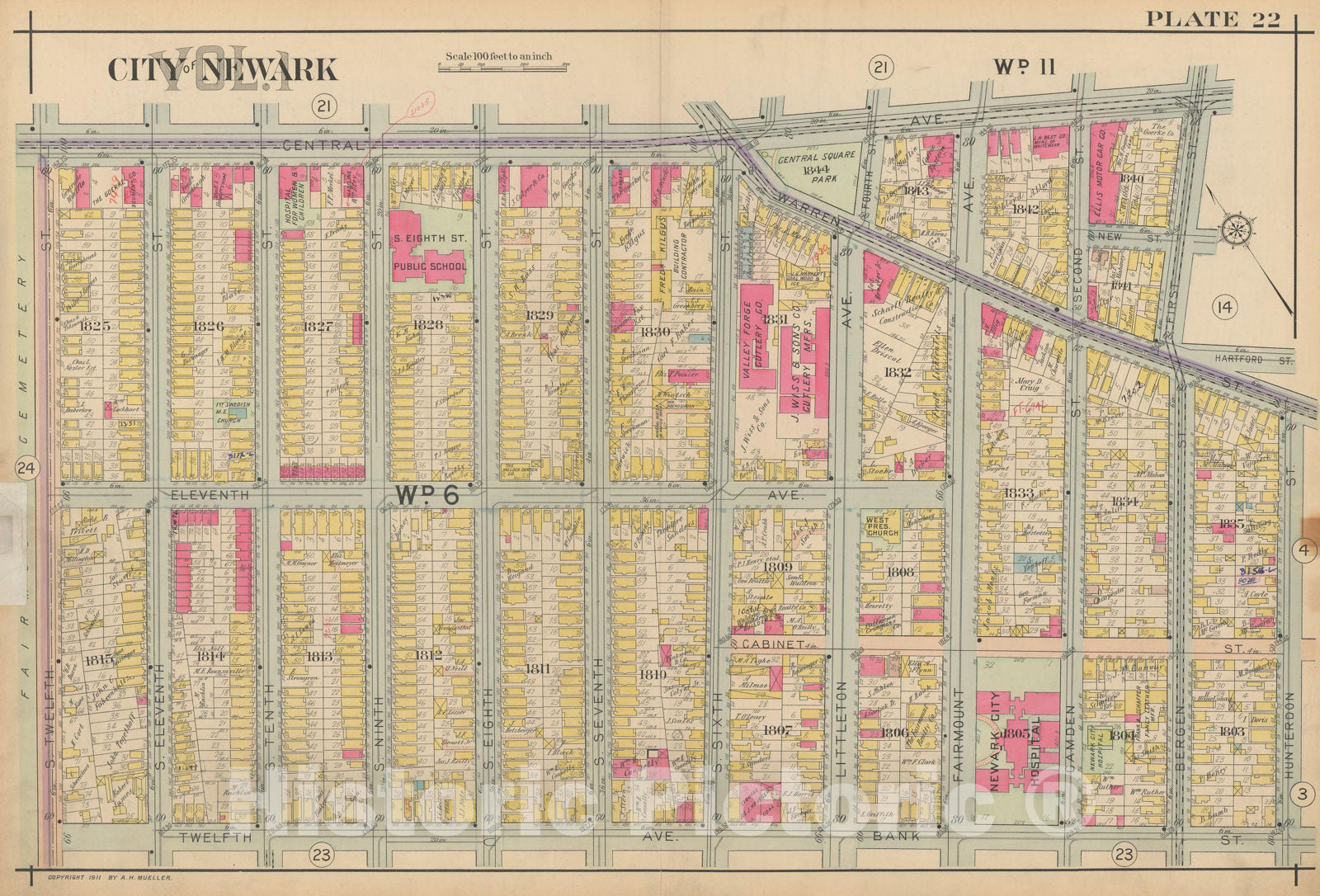 • .Historic Map : Atlas of Newark, Volume 1, Newark 1911 Plate 022 , Vintage Wall Art