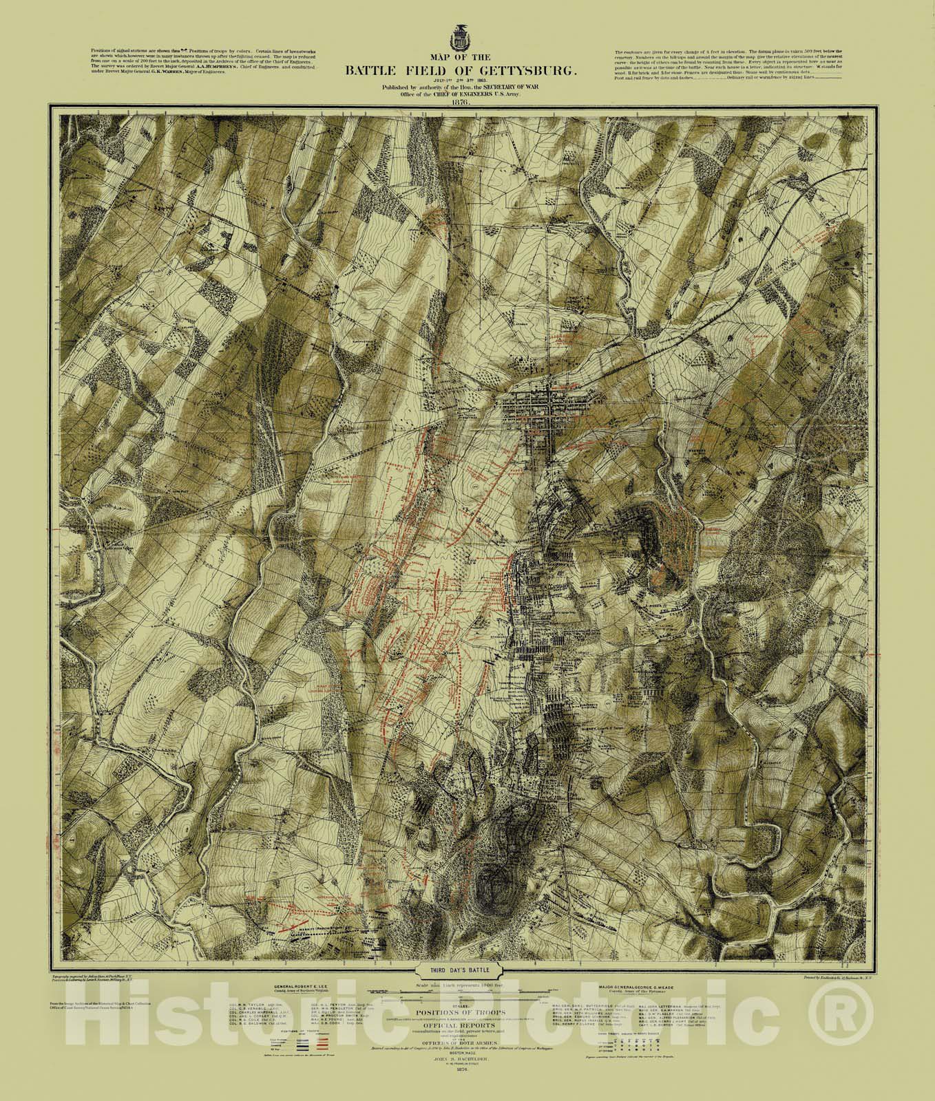 • .Historic Nautical Map - Map Of The Battlefield Of Gettysburg, Third Day'S Battle, PA, 1876 Civil War Historic Nautical Map - Vintage Wall Art
