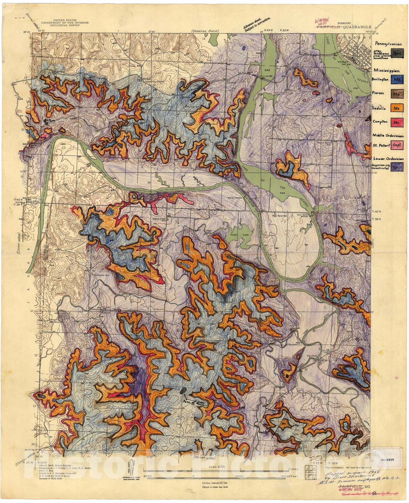 Map : Bedrock geologic map of the Warsaw West seven 1/2' quadrangle, Missouri, 1958 Cartography Wall Art :
