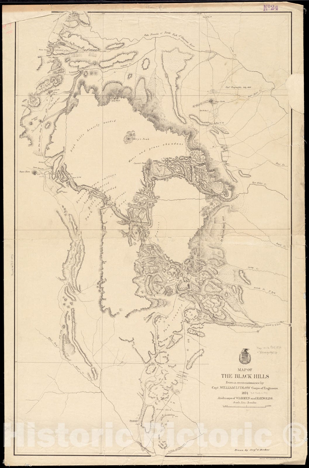 Map of the Black Hills from a reconnaissance by Capt. William Ludlow, Corps of Engineers, 1874, and maps of Warren and Raynolds