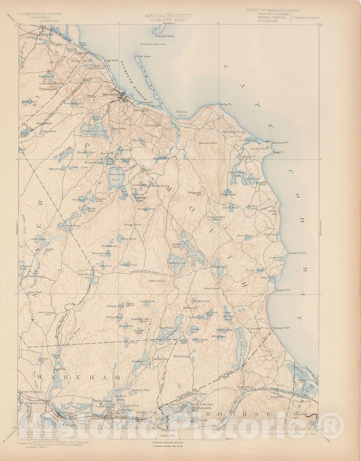 Historic Map : Bourne & Carver & Plymouth & Wareham 1904 Topographic Map , Vintage Wall Art