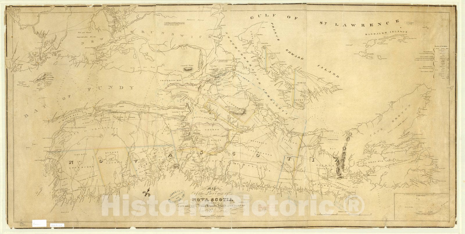 Map : Canada 1819, Map of the province of Nova Scotia, Cape Breton, Prince Edwards Island and part of New Brunswick , Antique Vintage Reproduction