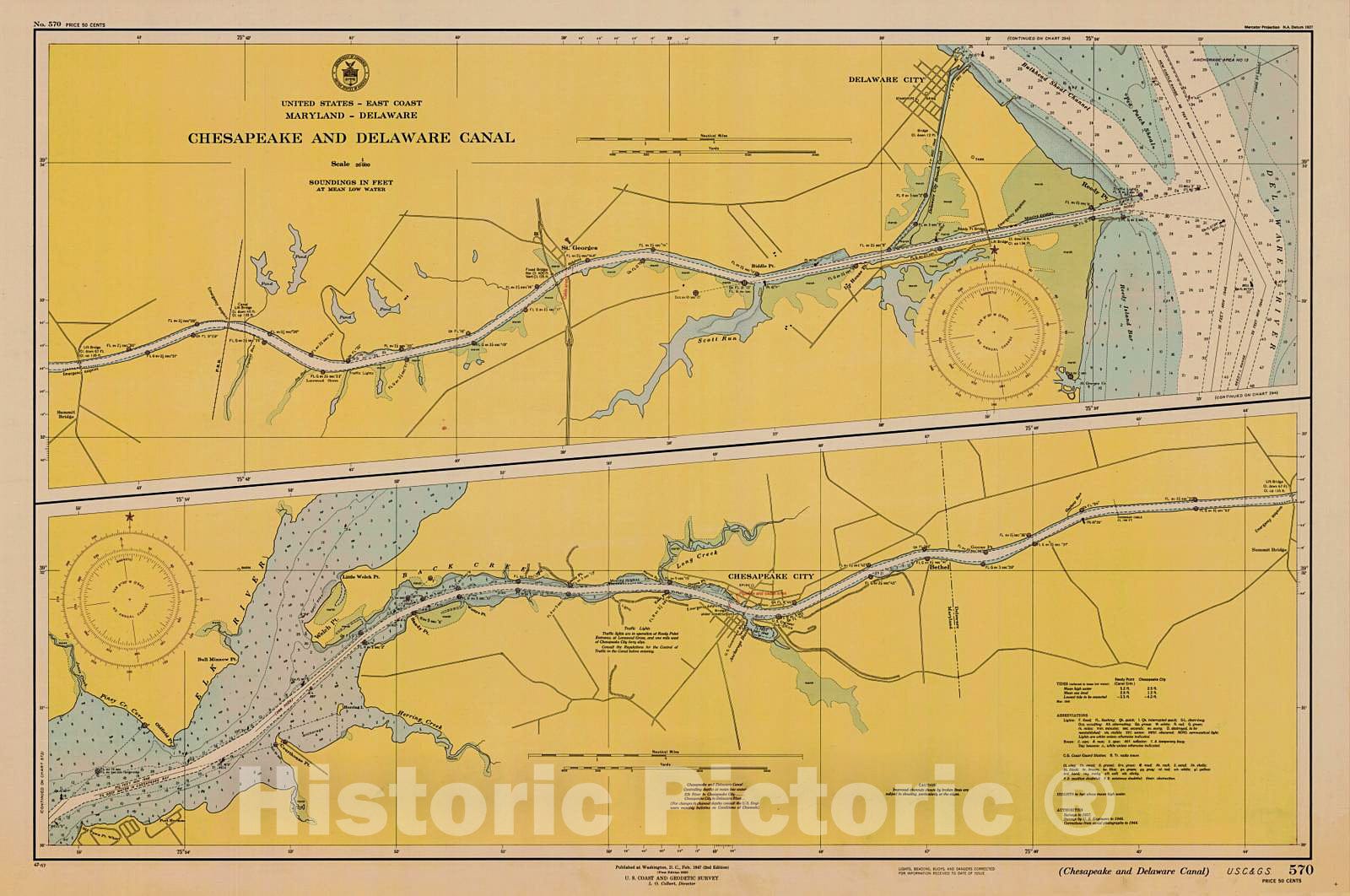 Historic Nautical Map - Chesapeake And Delaware Canal, 1947 NOAA Chart - Delaware, Maryland (DE, MD) - Vintage Wall Art