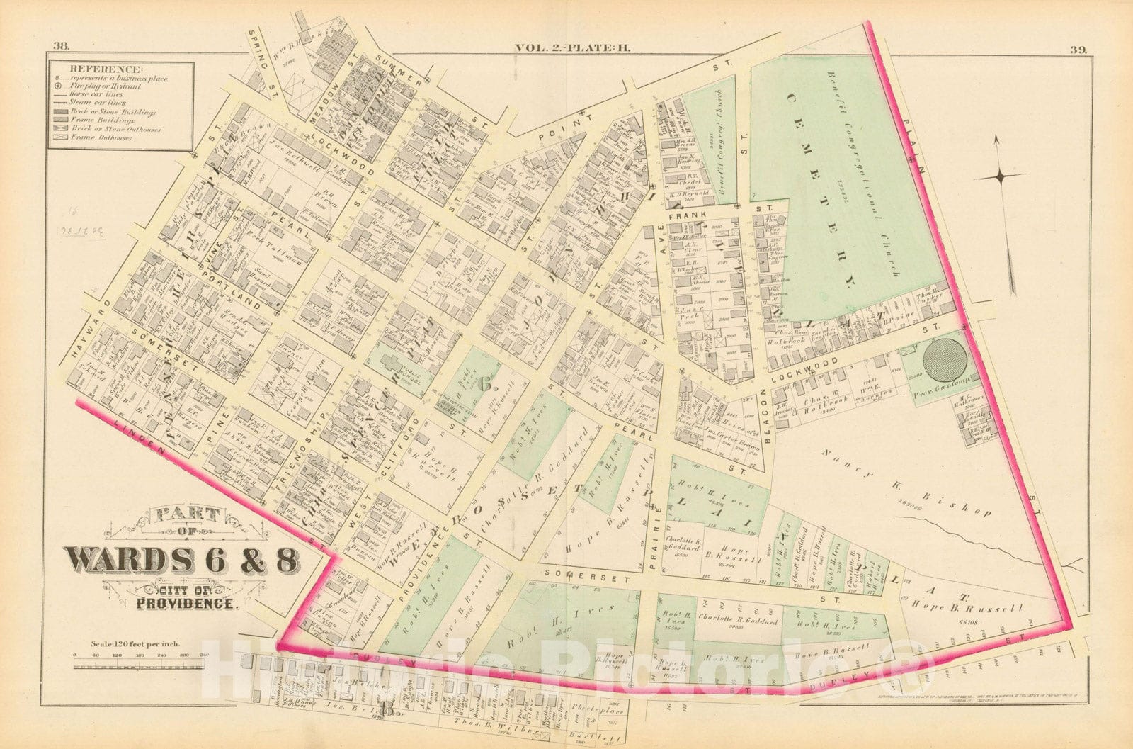 • .Historic Map : City Atlas of Providence Rhode Island by Wards, Volume II, Providence 1875 Plate H , Vintage Wall Art