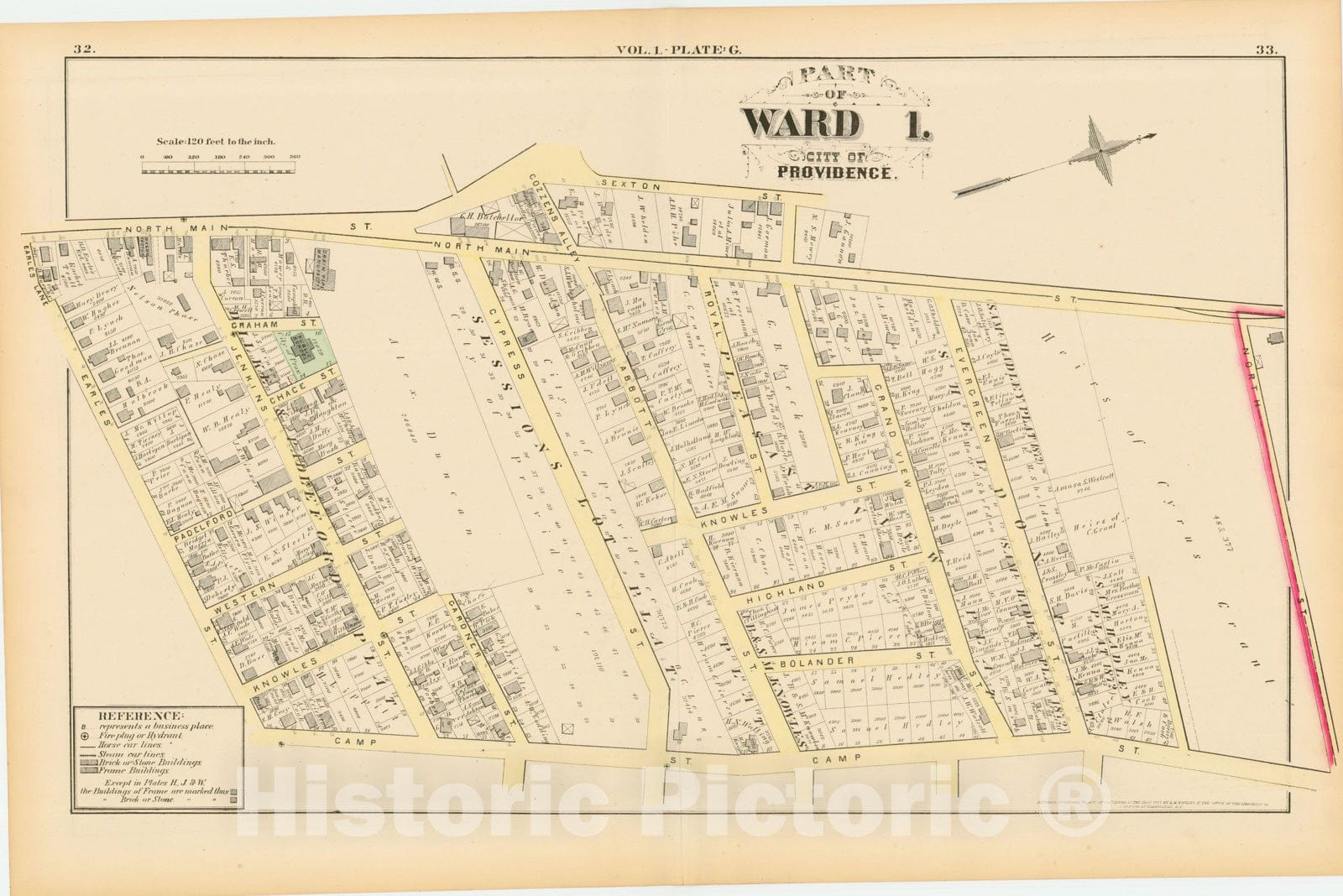 Historic Map : City Atlas of Providence Rhode Island by Wards, Volume I, Providence 1875 Plate G , Vintage Wall Art