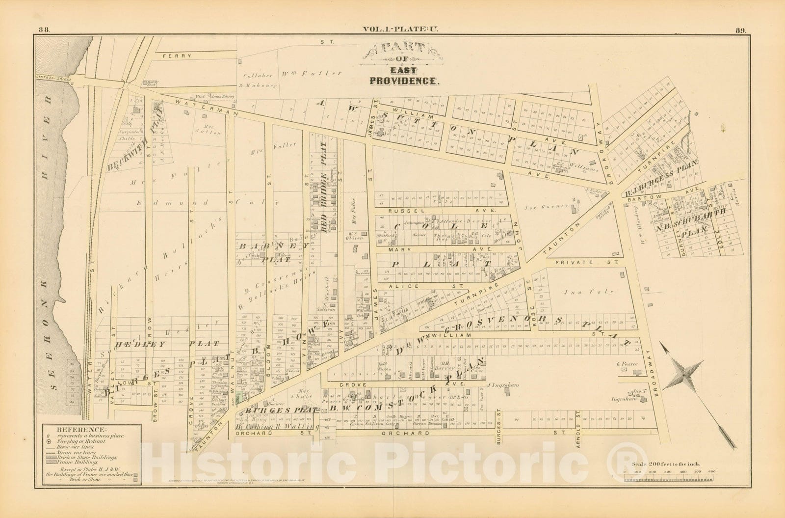 City Atlas of Providence Rhode Island by Wards, Volume I, East Providence 1875 Plate U