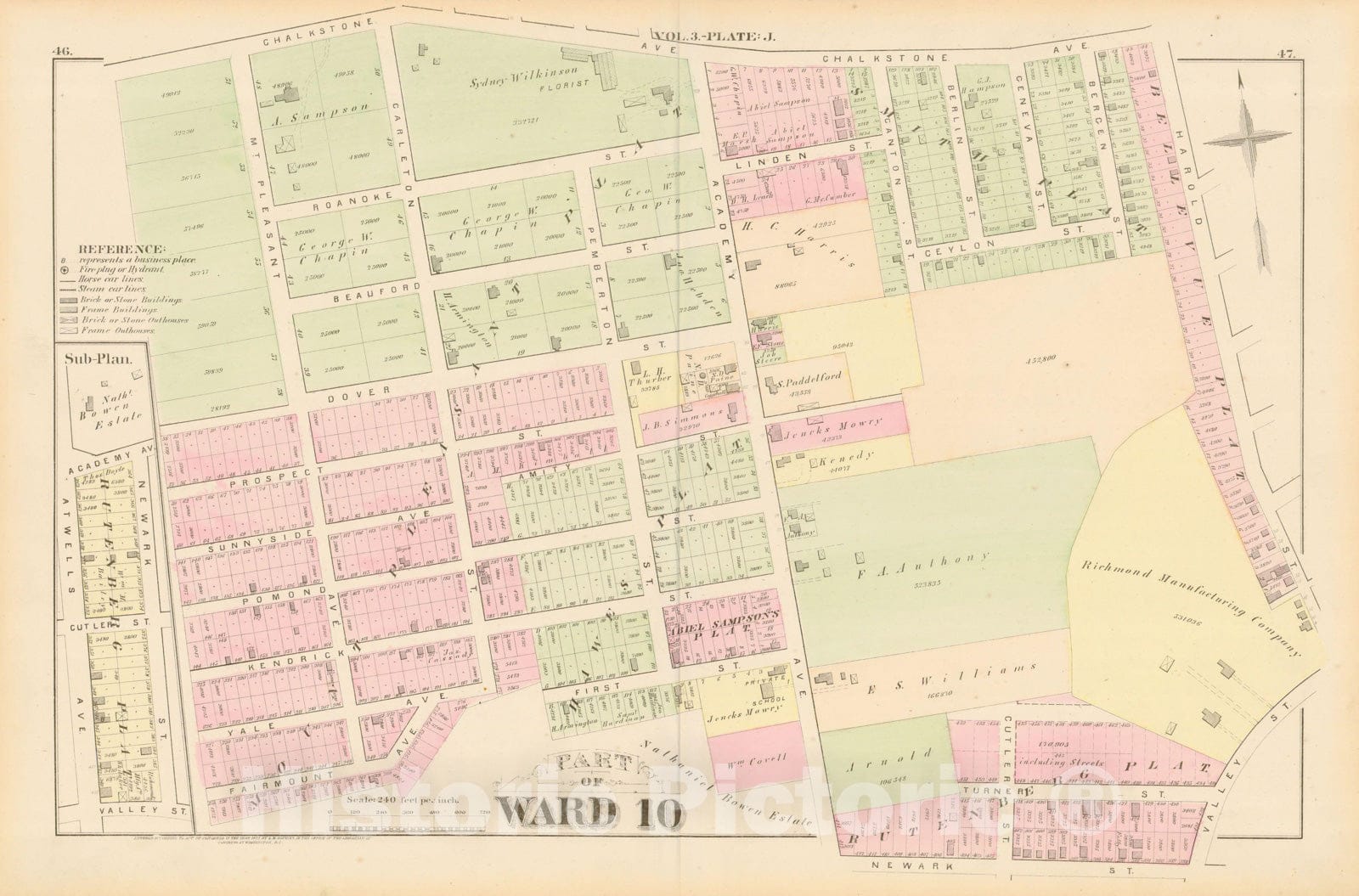 • .Historic Map : City Atlas of Providence Rhode Island by Wards, Volume III, Providence 1875 Plate J , Vintage Wall Art