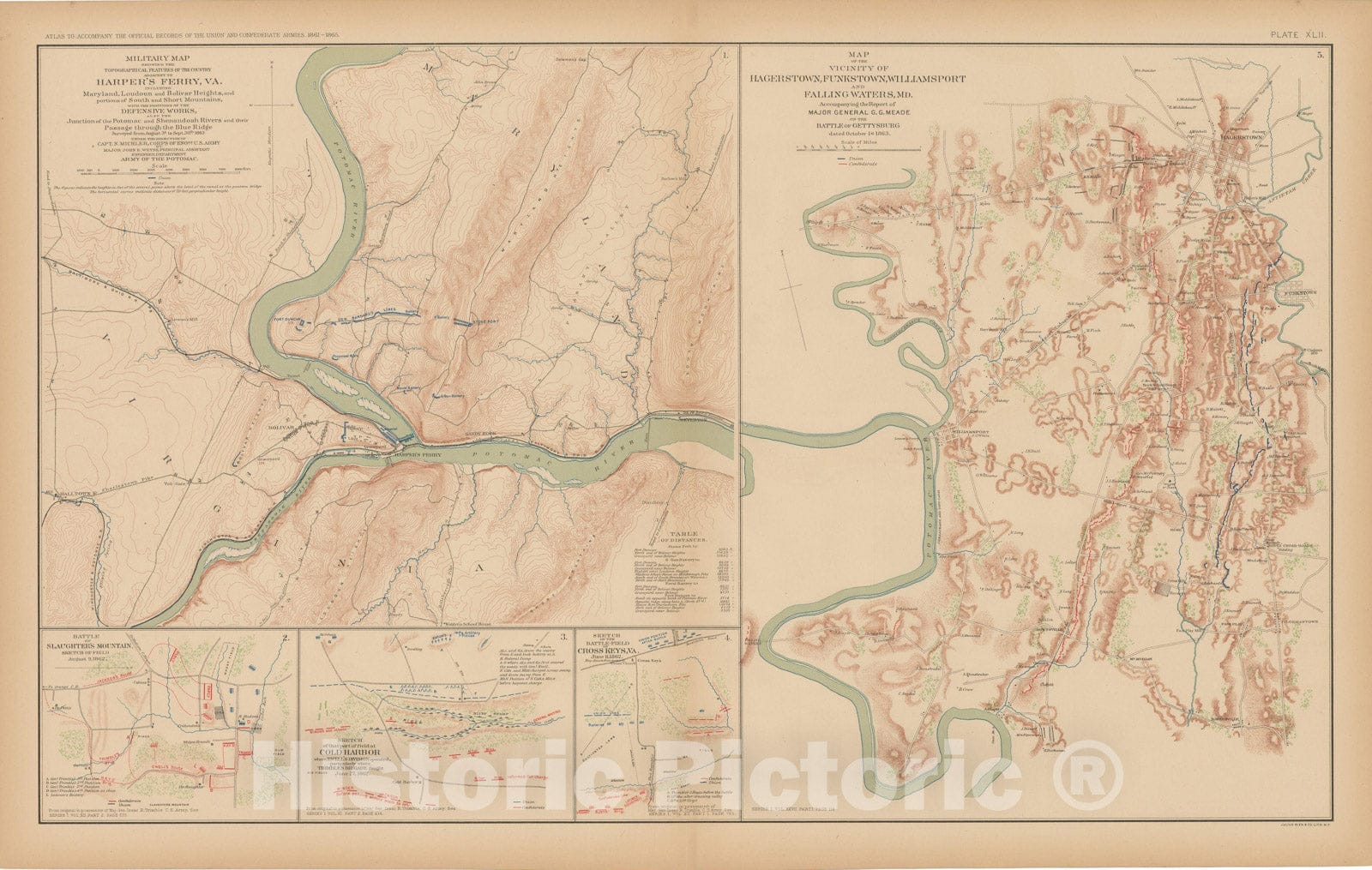 Historic Map : Civil War Atlas of the Union and Confederate Armies, Battles MD, VA & WV 1895 , Vintage Wall Art