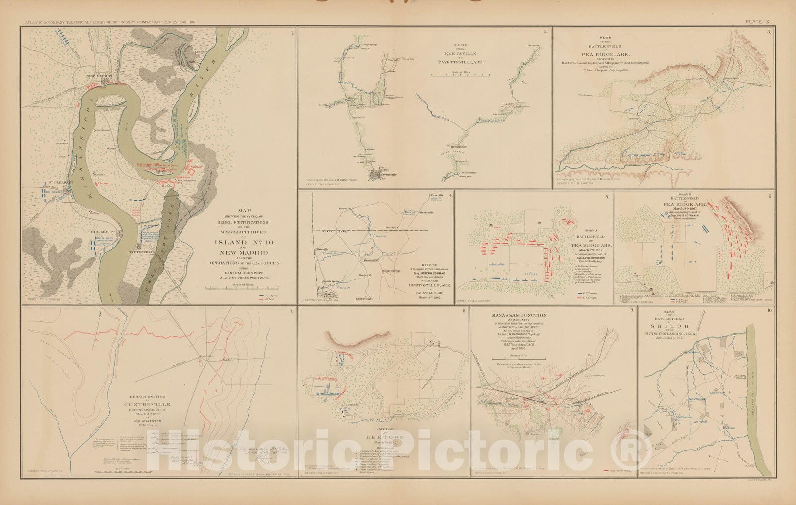 • .Historic Map : Civil War Atlas of the Union and Confederate Armies, Battles in AR, MO, TN & VA 1895 , Vintage Wall Art