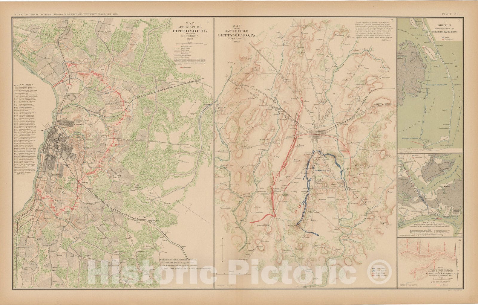 Historic Map : Civil War Atlas of the Union and Confederate Armies, Battles in GA, PA & VA 1895 , Vintage Wall Art