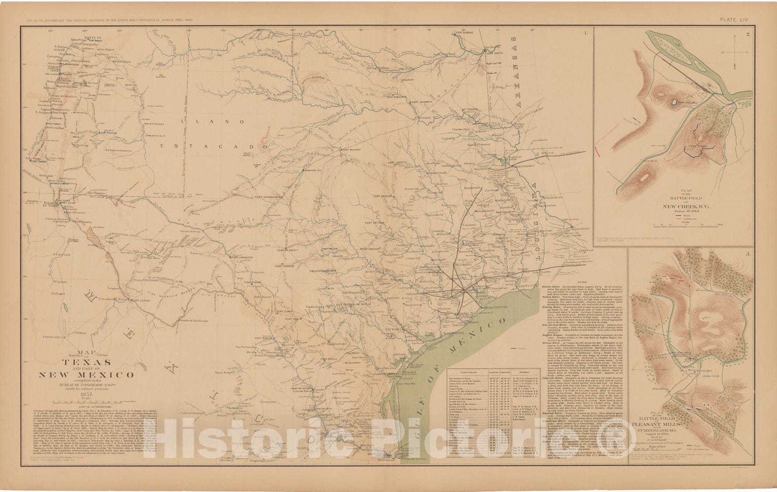 Historic Map : Civil War Atlas of the Union and Confederate Armies, Battles in MD, NM, TX & WV 1895 , Vintage Wall Art