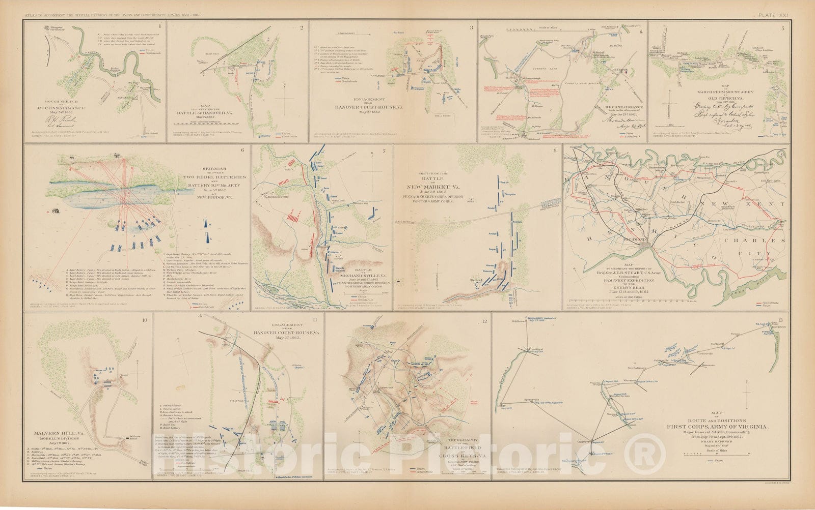 Historic Map : Civil War Atlas of the Union and Confederate Armies, Battles in Virginia 1895 , v5, Vintage Wall Art