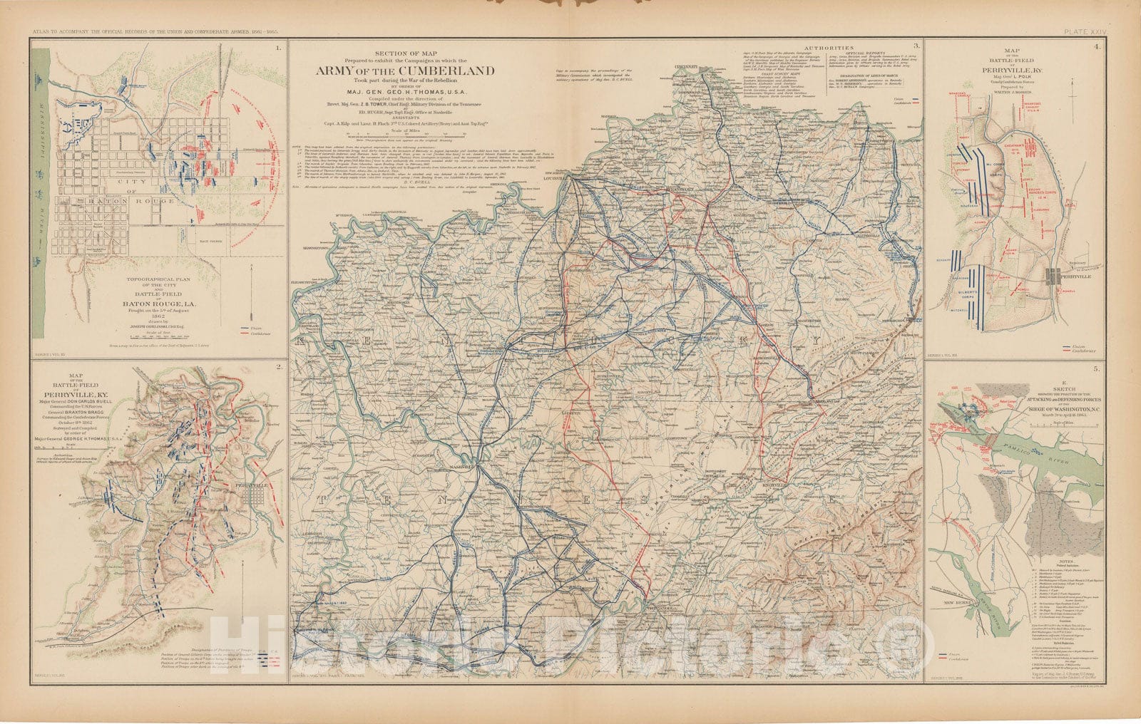 Atlas to Accompany the Official Records of the Union and Confederate Armies, Battles in KY, LA, TN & Washington DC 1895