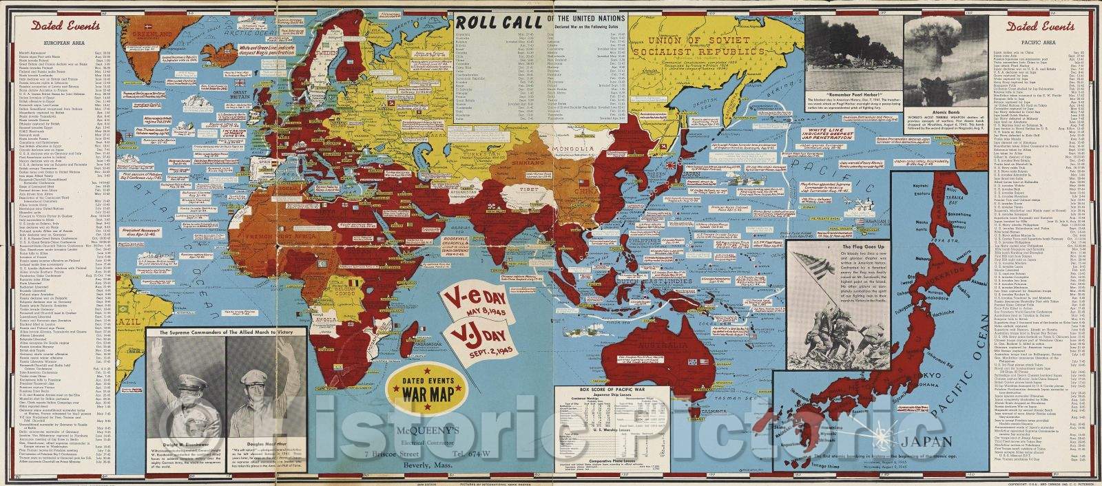 Historic Map : Dated Events War Map, 1945 , Vintage Wall Art
