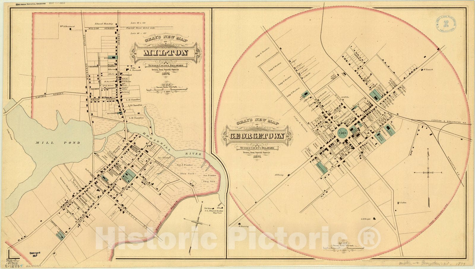 Gray's new map of Milton, Sussex County, Delaware, drawn from special surveys ; Gray's new map of Georgetown, Sussex County, Delaware, drawn from special surveys