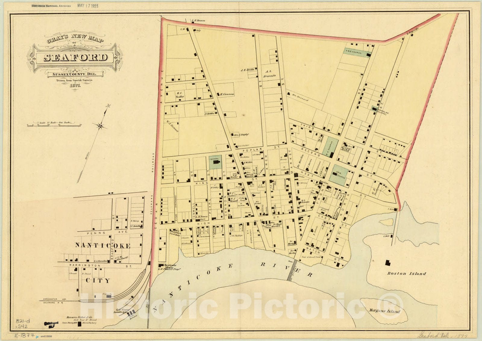 Map : Delaware 1877, Gray's new map of Seaford, Sussex County, Del. , Antique Vintage Reproduction
