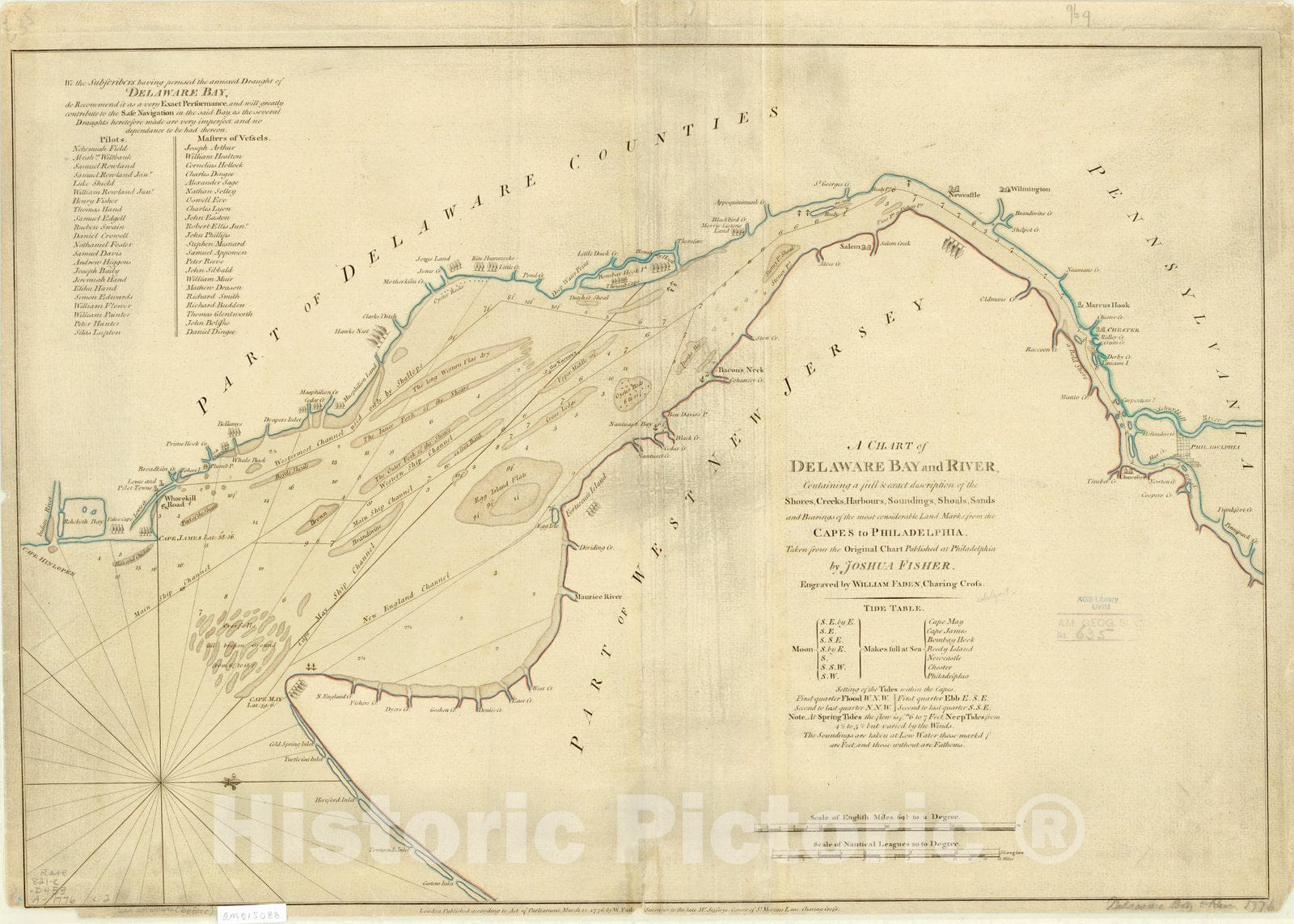 Map : Delaware Bay and River, 1776, Antique Vintage Reproduction