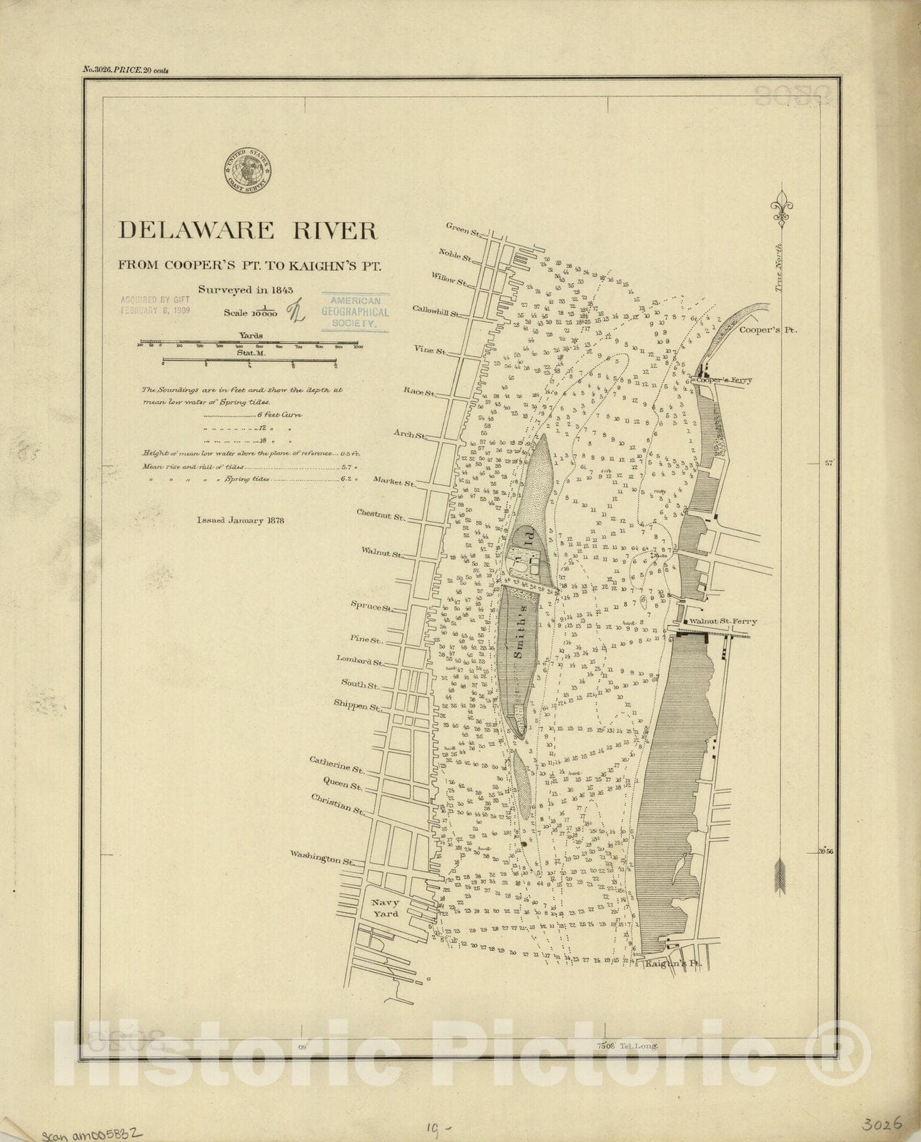Map : Delaware River 1878, Delaware River : from Cooper's Pt. to Kaighn's Pt. , Antique Vintage Reproduction